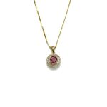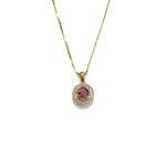 .70ct pink Maine tourmaline set with .17cttw of diamonds in double halo pendant 14k yellow gold 18" 14k gold box chain