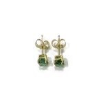 > .84cttw round blue green tourmaline studs set in 14k yellow gold