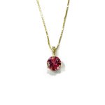 > Ladies pendant set with 1.86ct round pink tourmaline 14k yellow gold setting and 18" box chain