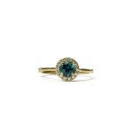 0.50ct Round Cut Indicolite Tourmaline Ring with 0.12cttw Diamond Halo Prong Set in 14K Yellow Gold