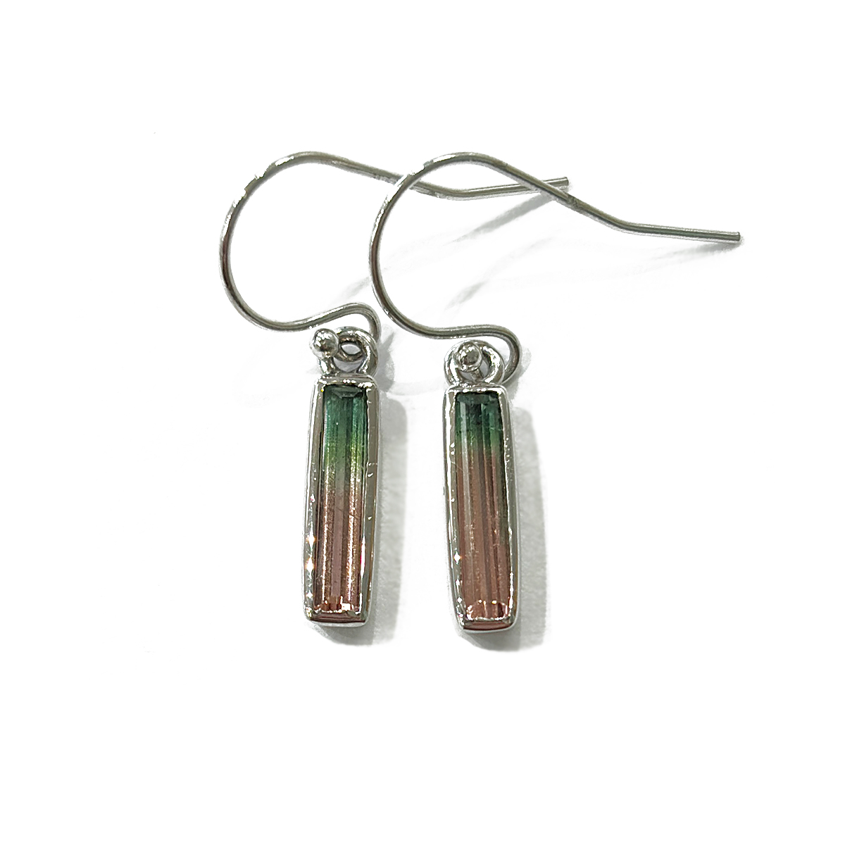 Hand Wrapped Watermelon Tourmaline Dangle Earrings in Sterling Silver